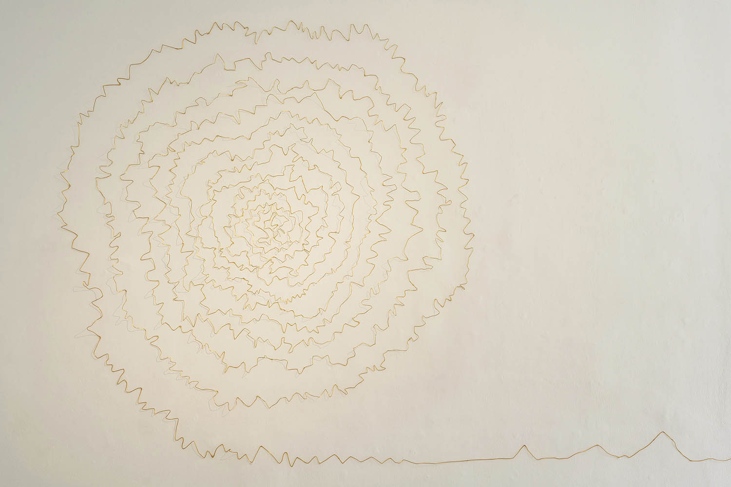 Lo arácnido es una dimensión en la que la duración temporal tiene acento trepidante: el cuerpo de la araña es un haz de necesidades y recursos que produce el hilo que teje, del cual depende su vida. Hilo que condujo a Lorena Noblecilla hasta el corazón de su proceso creativo. Ya inmersa en él, lo escultórico apareció bajo forma de línea en el espacio, y fue la guía a un imaginario que requirió otras materialidades posibles para dar cuerpo a una nueva visión. Lo que la condujo al centro del laberinto, le permitió salir enriquecida para hacer un nuevo camino.