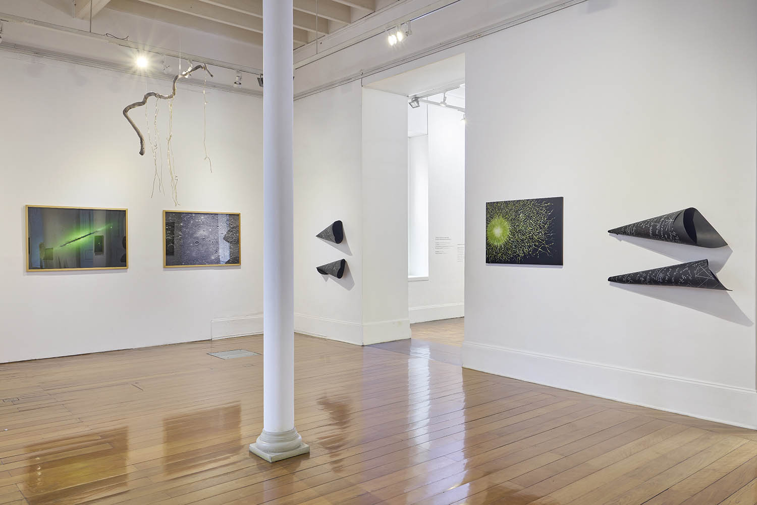La exposición conecta escalas aparentemente inconciliables: el espacio sideral y el interior de un hormiguero. Esta tensión entre extremos lo astronómico y lo ínfimo no se resuelve, sino que se convierte en método de pensamiento. Nos situamos en una ecología expandida, donde cada plano se espejea y se afecta mutuamente.